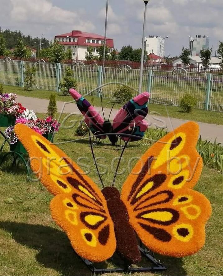 Металлический каркас, искусственный газон.